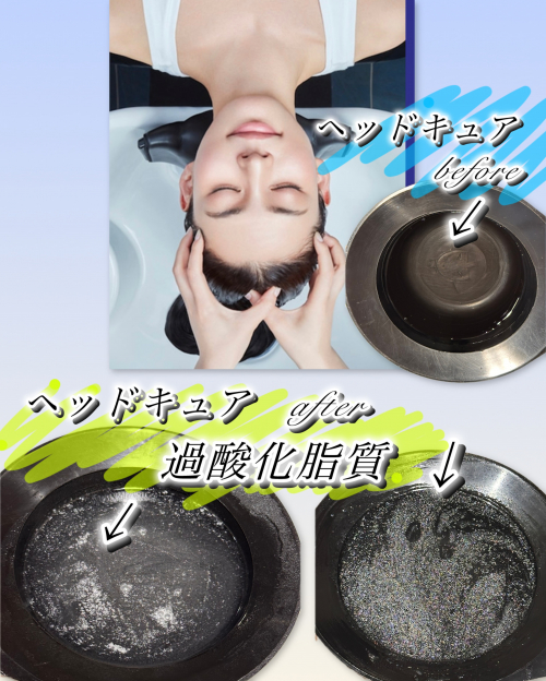 ヘッドキュア後、個人差はありますが、過酸化脂質がでてきて地肌がスッキリします☆